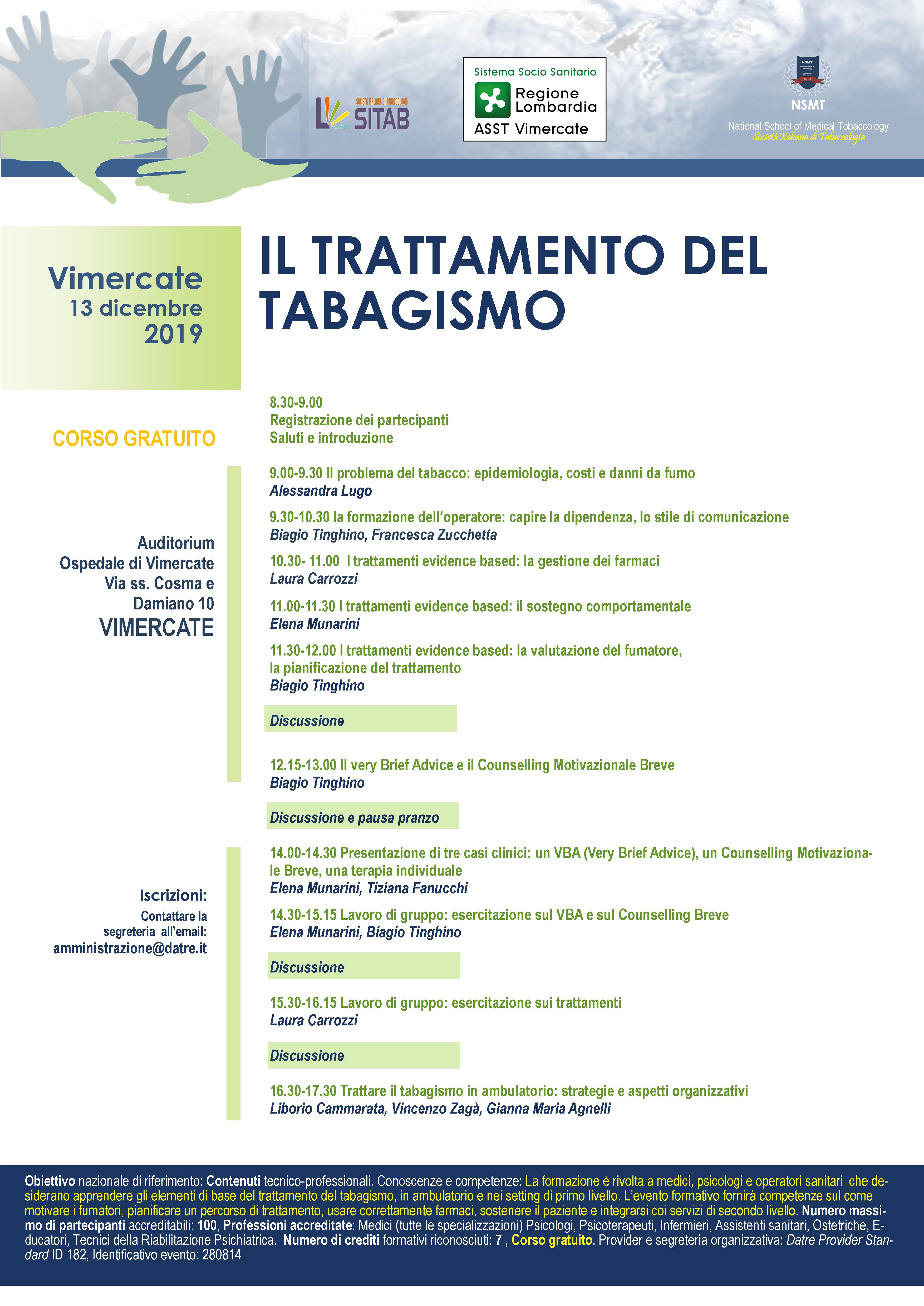 La formazione, inoltre, ha tra i suoi principali obiettivi quello di fornire gli elementi basilari per il trattamento del tabagismo: pianificazione del percorso di disassuefazione dal fumo, approcci farmacologici, sostegno comportamentale